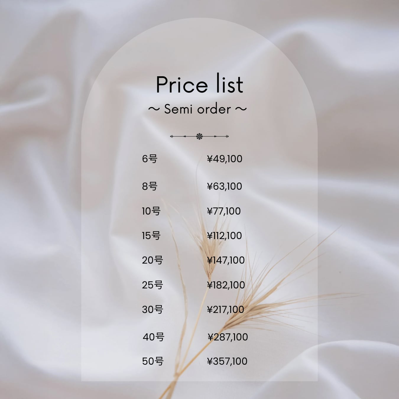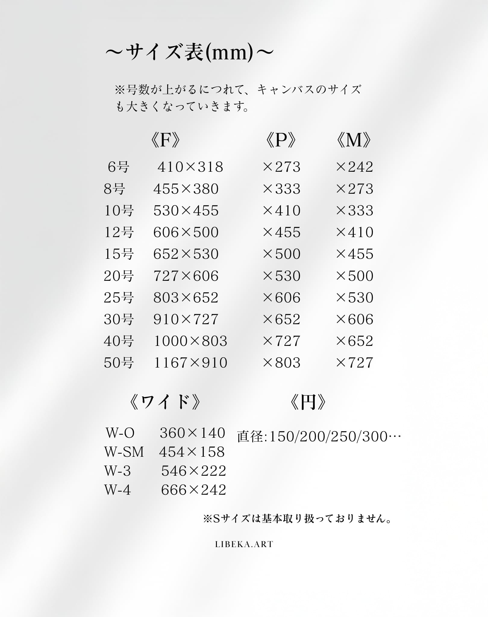 作品価格はサイズごとに設定しております。