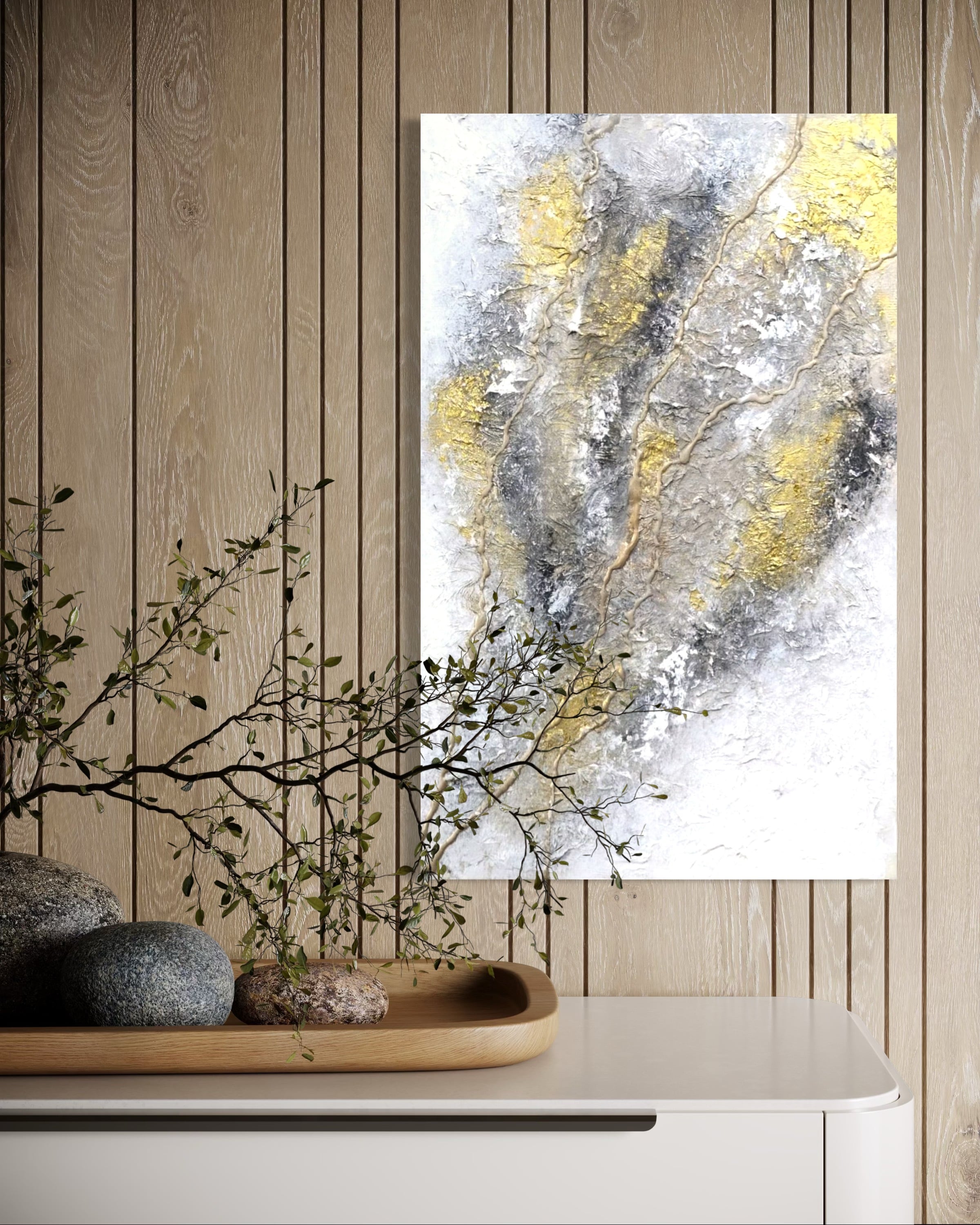 撮影時には実際の色合いに近づけるよう調整しておりますが、閲覧環境(モニターの設定や明るさなど)によっては若干異なって見える場合がございます。また、絵具やモデリングペーストの質感・凹凸感は写真では伝わりきらない部分もございますので、実物ならではの立体感をぜひお楽しみください。