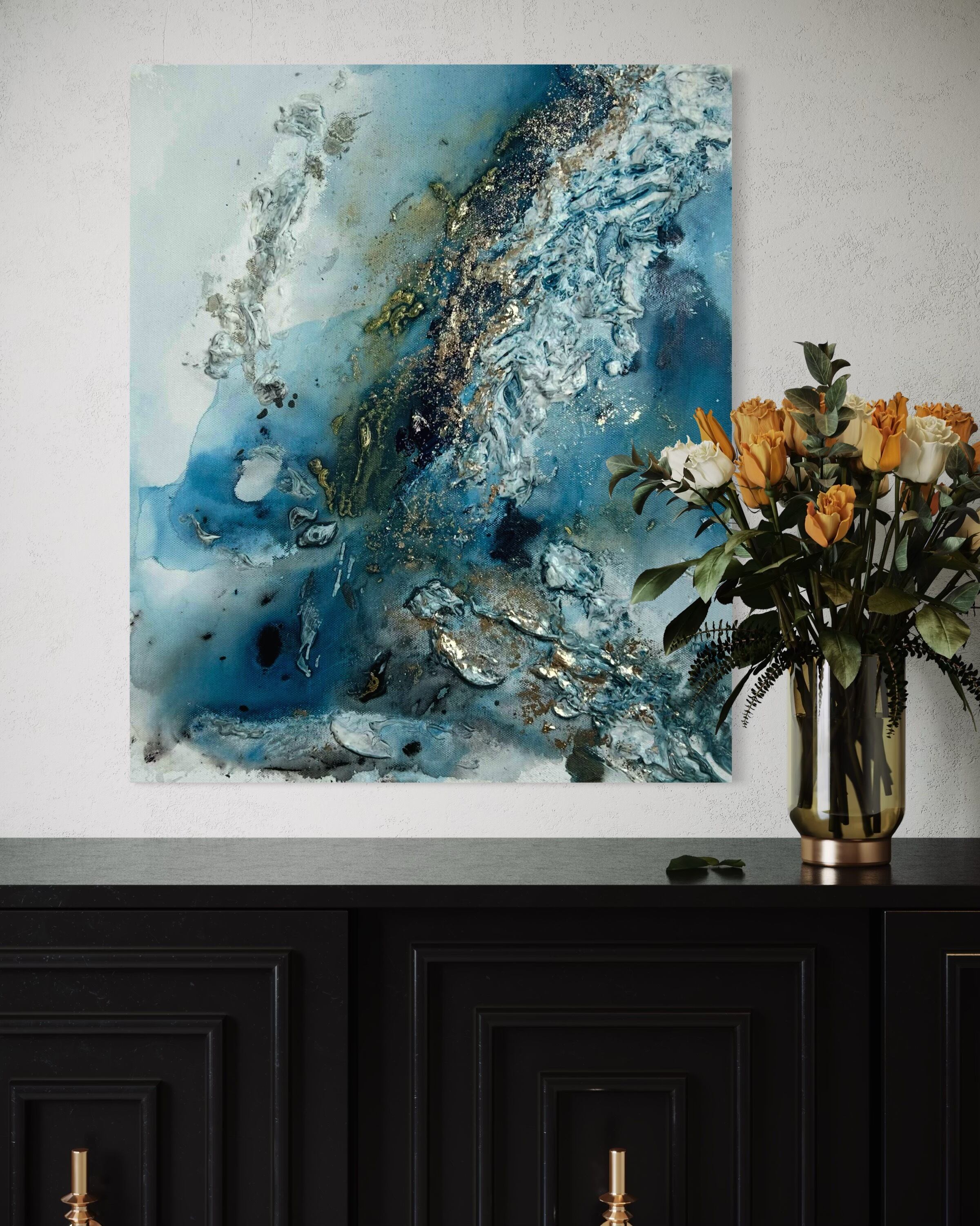撮影時には実際の色合いに近づけるよう調整しておりますが、閲覧環境(モニターの設定や明るさなど)によっては若干異なって見える場合がございます。また、絵具やモデリングペーストの質感・凹凸感は写真では伝わりきらない部分もございますので、実物ならではの立体感をぜひお楽しみください。