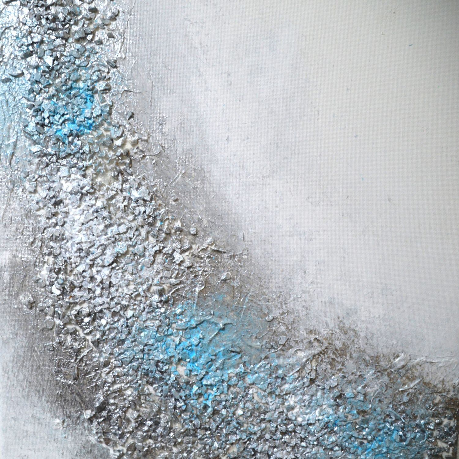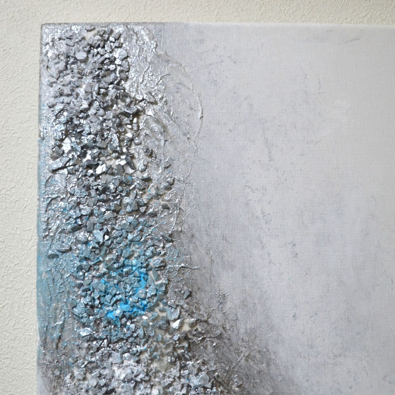 アクリル絵の具とガラス片で描かれた「静謐(せいひつ)」。