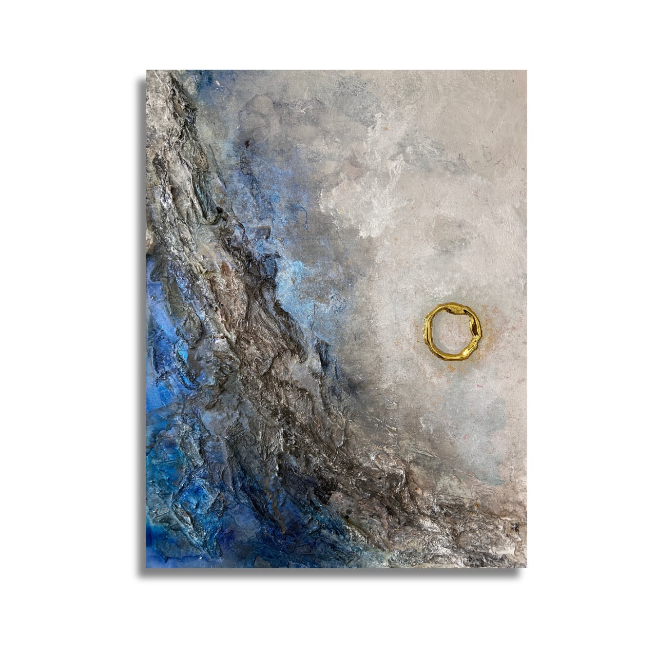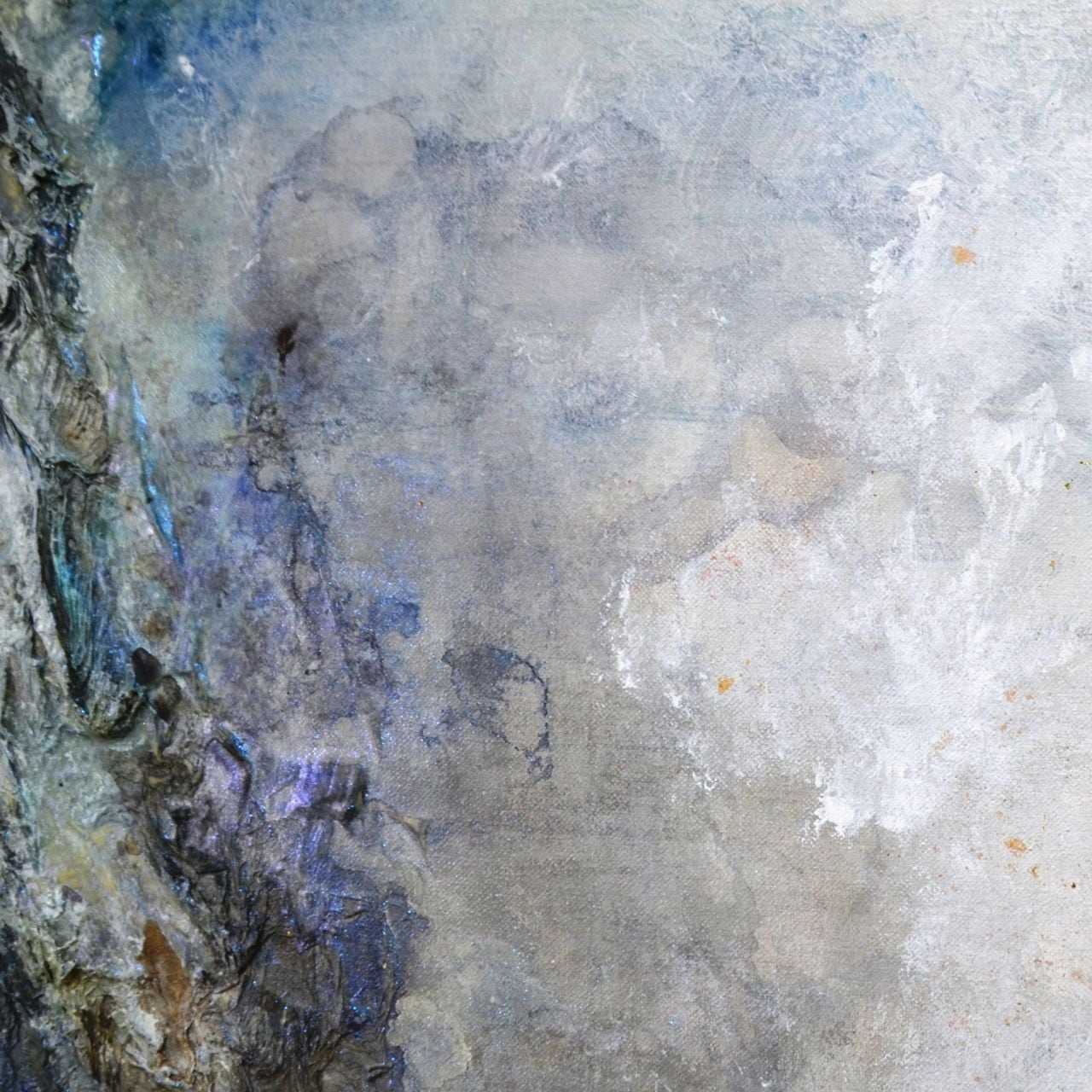 ざらりとした質感と重なり合う色層は、澄みきった大気と、そこに満ちる冷たい静寂を表しています。