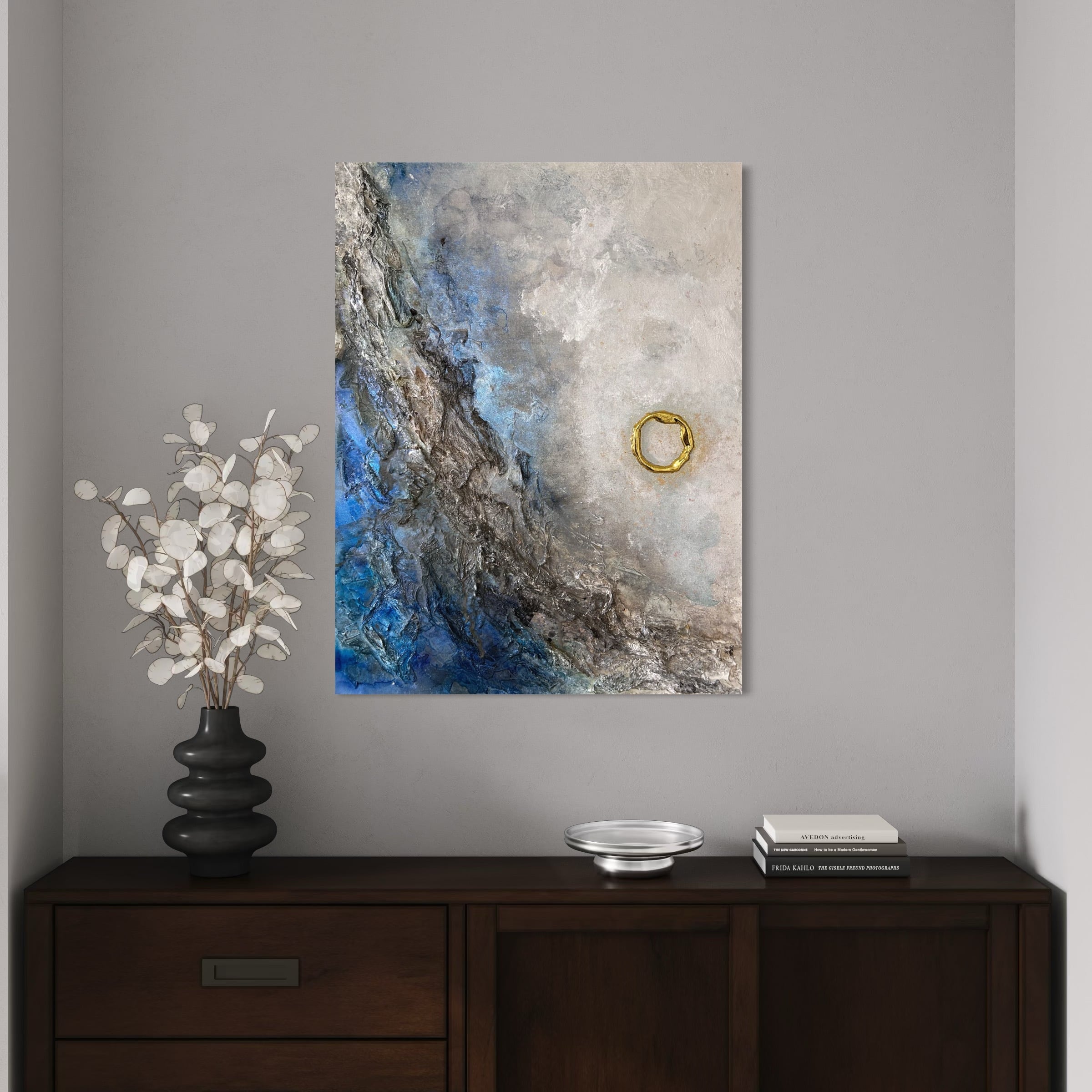 撮影時には実際の色合いに近づけるよう調整しておりますが、閲覧環境(モニターの設定や明るさなど)によっては若干異なって見える場合がございます。また、絵具やモデリングペーストの質感・凹凸感は写真では伝わりきらない部分もございますので、実物ならではの立体感をぜひお楽しみください。