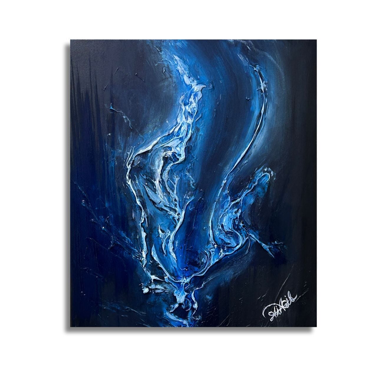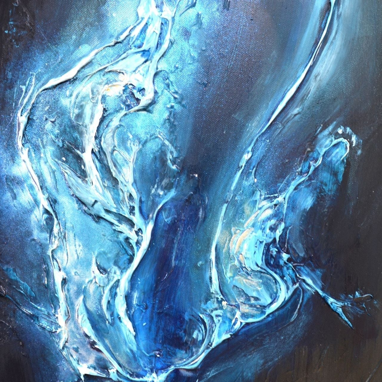暗闇の中で少しずつ動き始める気配や、内側から生まれる意識の変化を、青を基調とした色彩と流れるような形で表現しています。