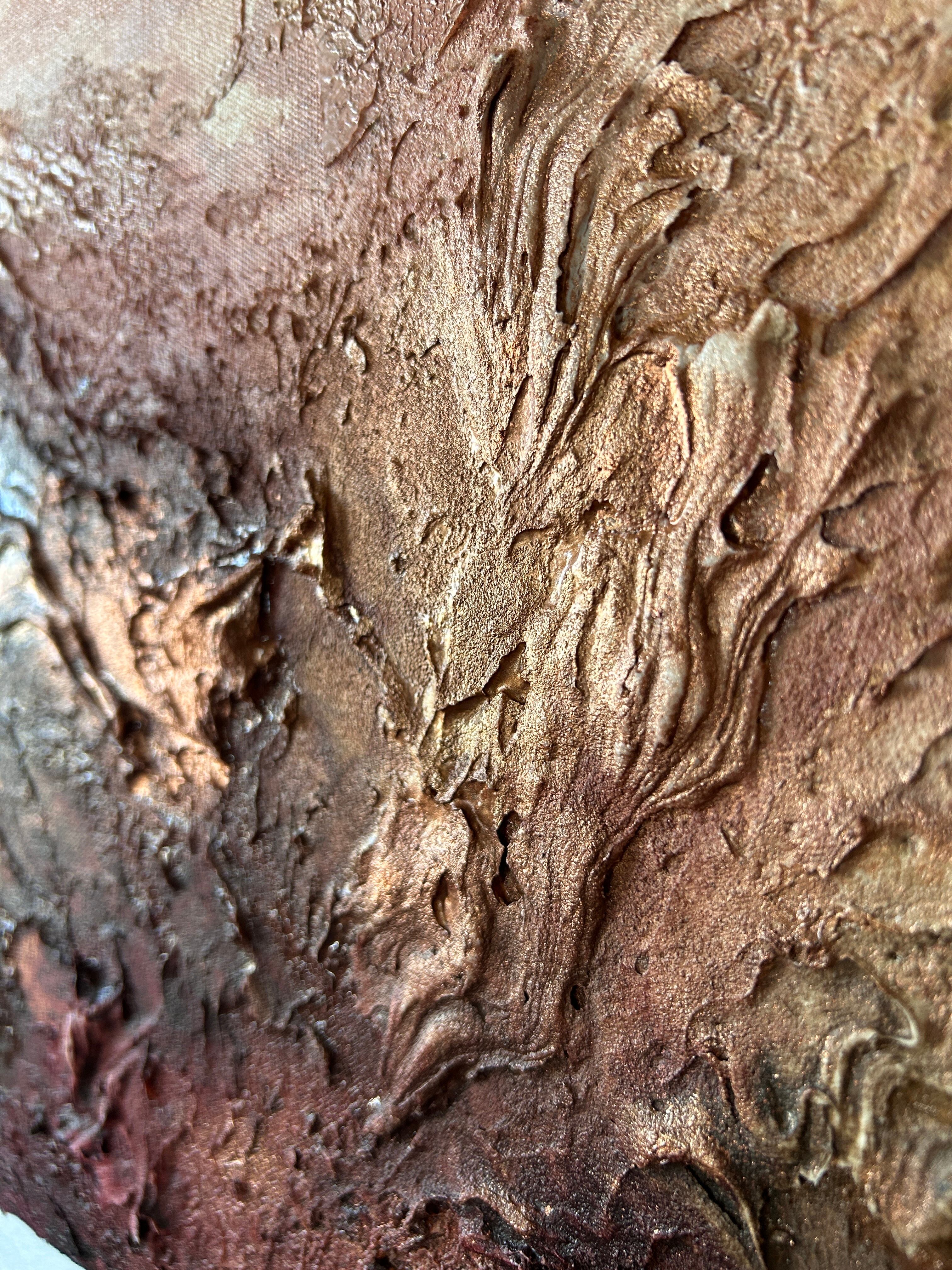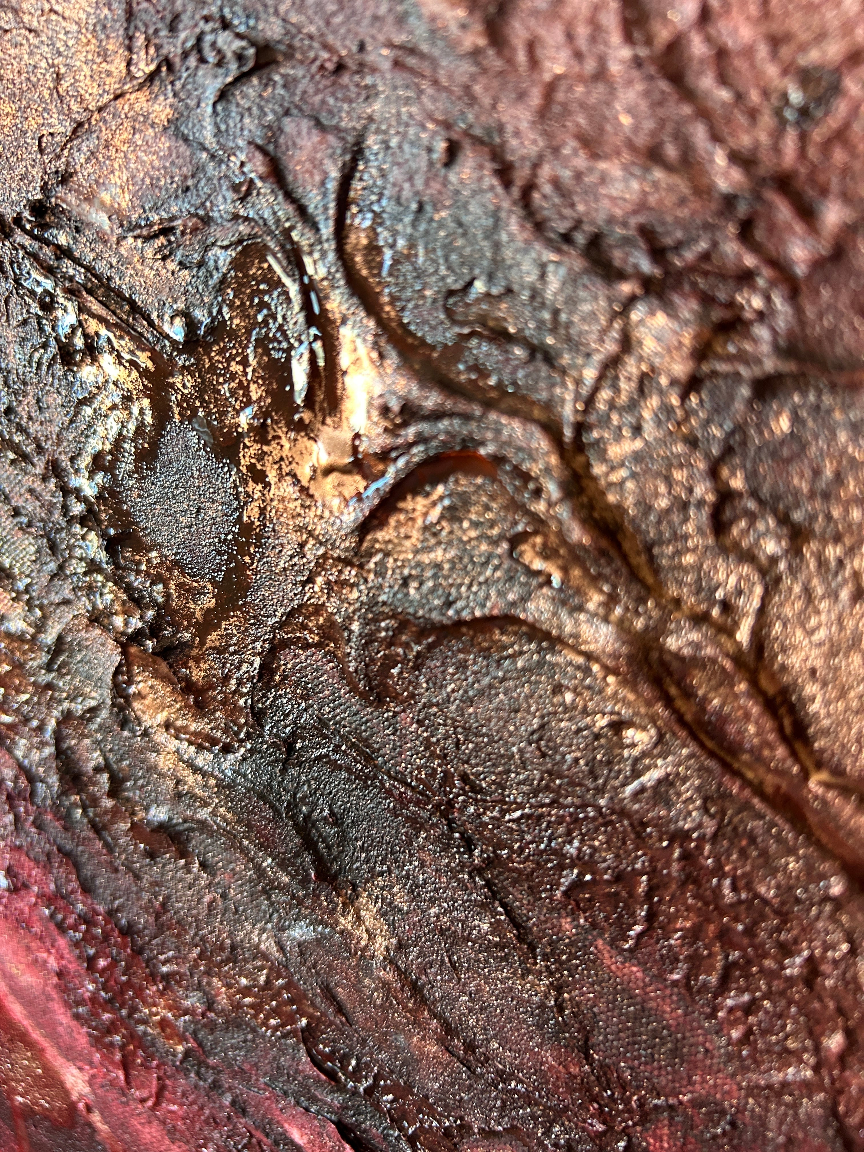 撮影時には実際の色合いに近づけるよう調整しておりますが、閲覧環境(モニターの設定や明るさなど)によっては若干異なって見える場合がございます。また、絵具やモデリングペーストの質感・凹凸感は写真では伝わりきらない部分もございますので、実物ならではの立体感をぜひお楽しみください。
