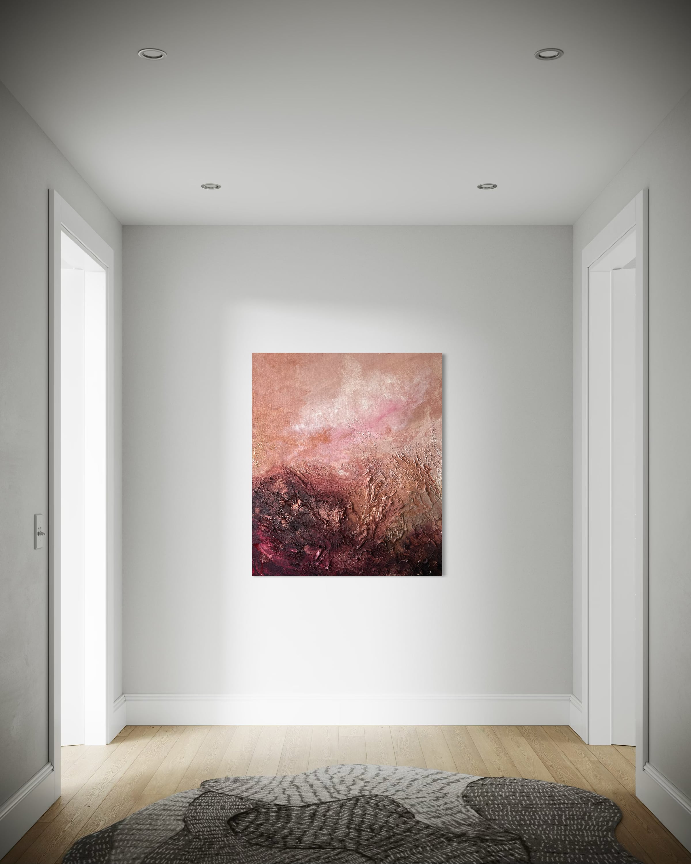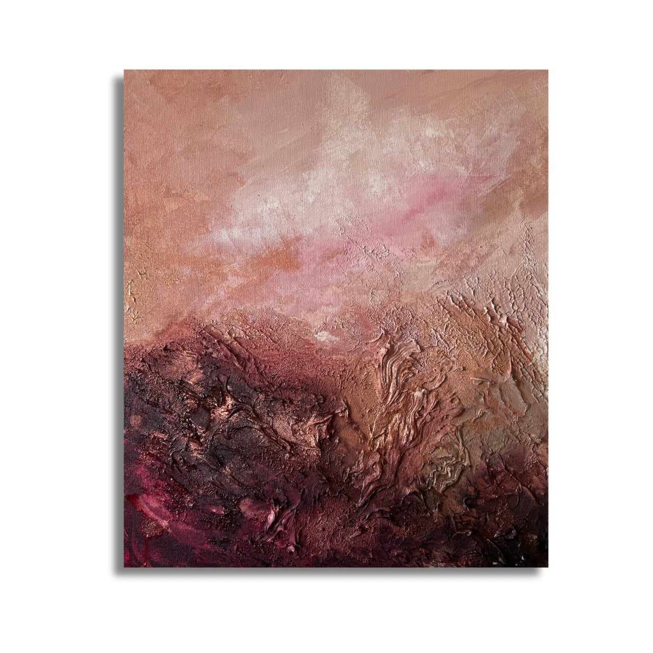 重なり合う質感と色彩は、静かな変化の気配を表現しています。